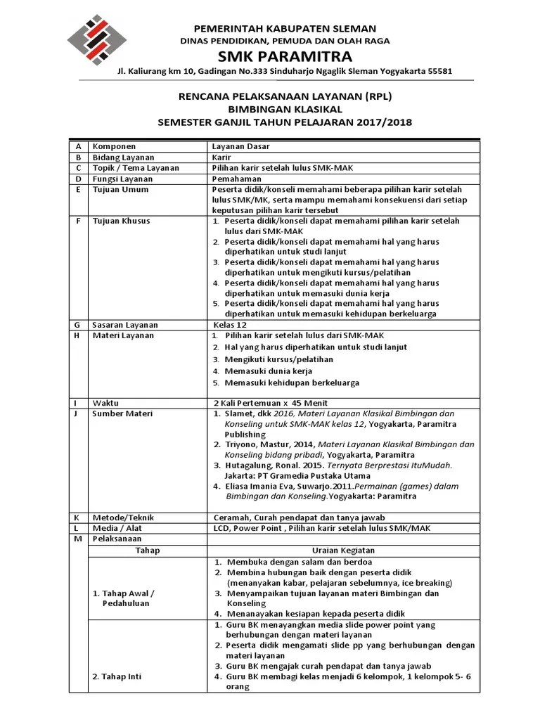 Penilaian karakter jenjang sd/mi, smp/mts, sma/smk/ma . Beli koleksi rpl bk smk online lengkap edisi & harga terbaru august 2021 di tokopedia! Klien ini adalah siswa pindahan dari smk purworejo dan memang rumahnya jauh dari sekolahan. View rpl bk smk.pdf from com misc at muhammadiyah university of prof. Satuan layanan bimbingan konseling (rppbk) topik permasalahan/bahasan :